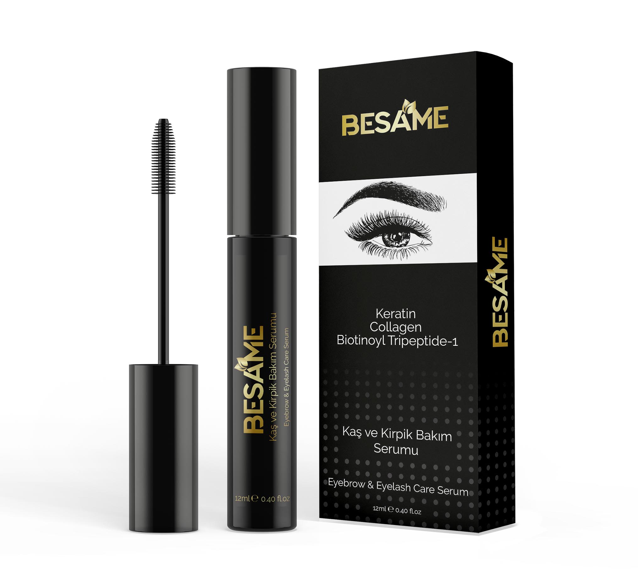 Besame Keratin Collagen Kaş ve Kirpik Bakım Serumu içeriğinde yer alan Kolajen ile kirpiklerin canlanmasına ve daha iri görünmesine destek olurken Provitamin B5 ile kirpiklerin güneşten ve çevresel toksinlerden korunmasına yardımcı olur. Keratin bileşeni ile kirpik ve kaşlara hacim kazandırır.